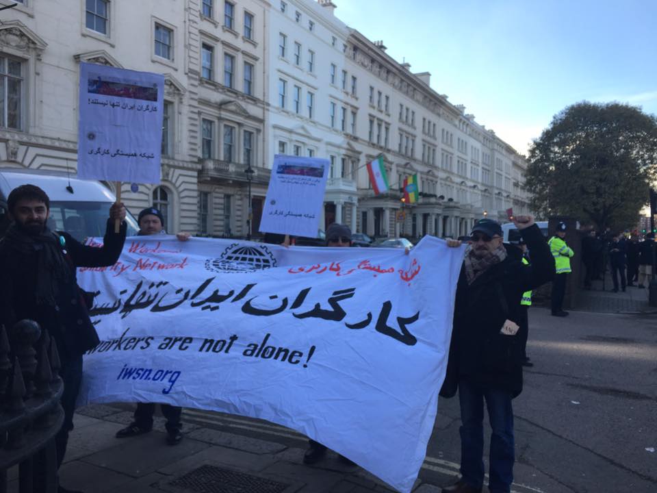 We chose this day to protest at the Iranian state’s treatment of the labour movement that fought for freedom in 1979 and continues to fight for freedom today.