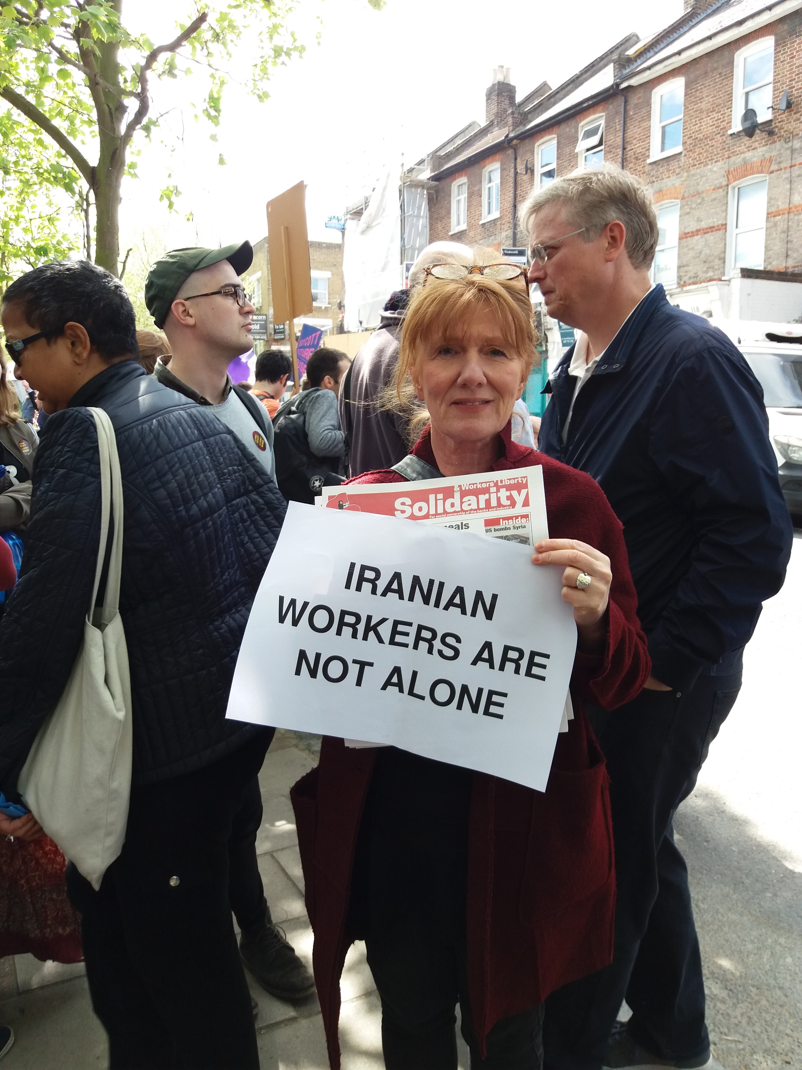 Jill Mountford, Lewisham Momentum (Labour Party left group) co-chair, showing her solidarity with Iranian workers’ struggles.