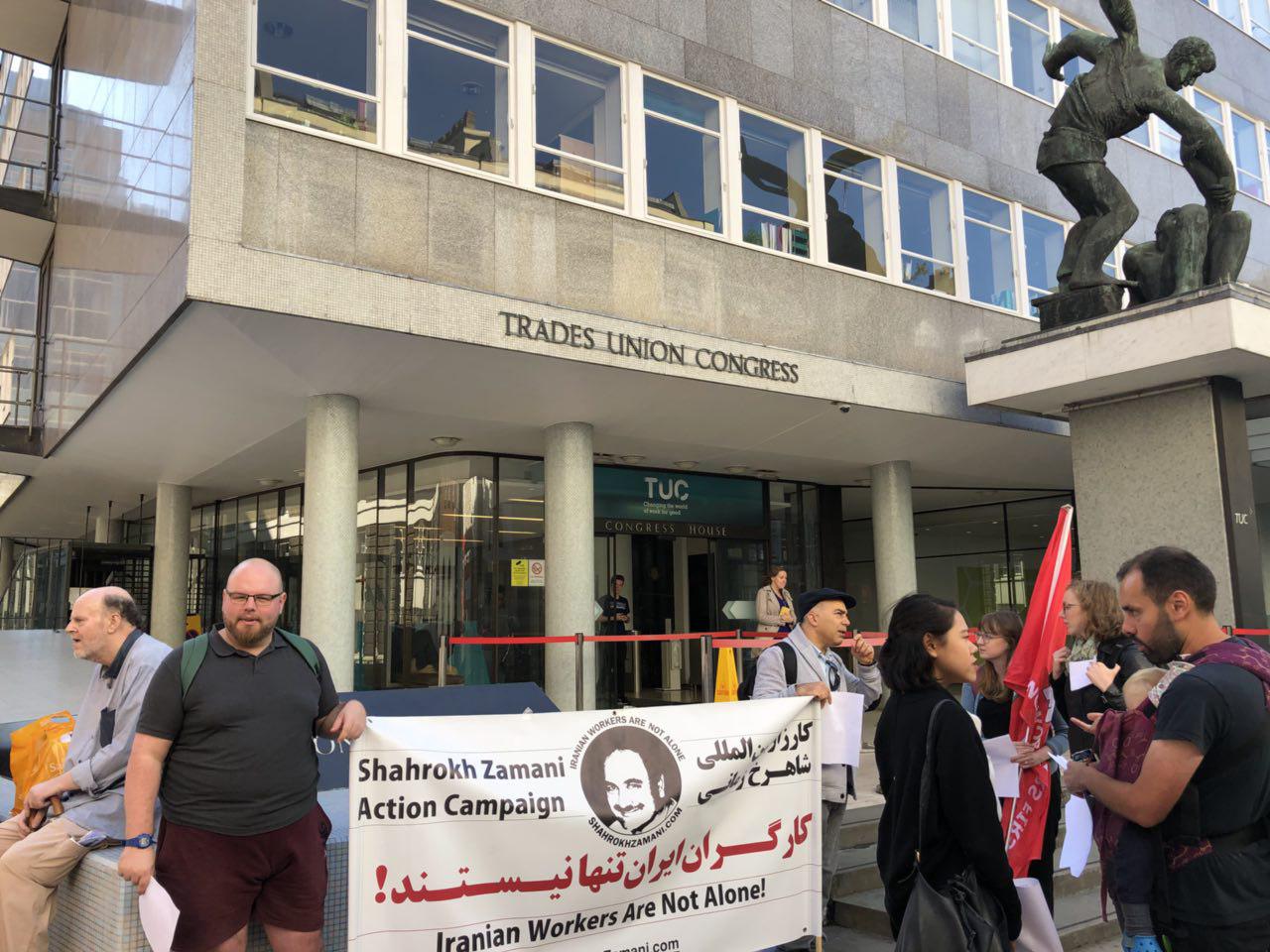 Today activists of the Shahrokh Zamani Action Campaign were joined by members of the Independent Workers’ Union of Great Britain and Alliance for Workers’ Liberty outside Transport House, the Headquarters of the Trades Union Congress.
