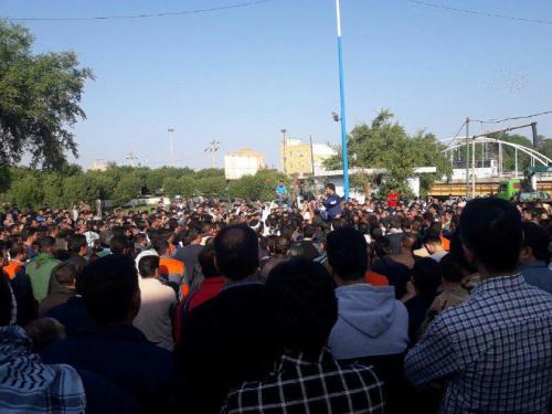 At the same time hundreds of striking National Steel Industrial Group (INSIG) steelworkers protested in the streets of Ahvaz. Workers in both cities chanted solidarity slogans in support of each other.
