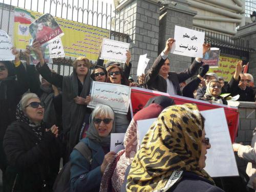 As well as chanting slogans about the cost of living, in Tehran the retired protesters demanded the release of jailed teachers. They chanted “Free all jailed teachers!” and “Prison is no place for teachers!”