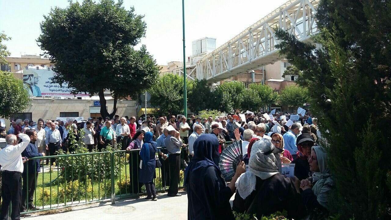The protesters gathered in central Tehran demanding a rise in their pensions, as inflation and other economic problems continue to erode their real income.