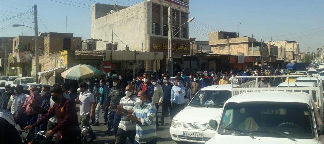 On the twentieth day of the Haft Tappeh workers’ strike a group of workers gathered at the Governor’s Office and marched inside Shush town.