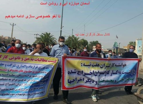 After speeches outside the Governor’s Office, the workers and their families marched along various streets in Shush. Despite the 50-plus Celsius temperature the workers re-iterated their main demands, particularly revoking privatisation.