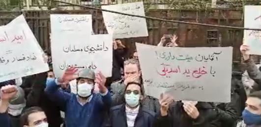 Basiji students tried to shout down the demonstrators but were not successful. A number of activists were detailed and threated but were later released.