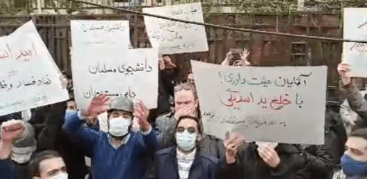 On December 23rd tens of students, pensioners, teachers and political activists demonstrated in front of the Iranian regime’s Justice Department in Tehran.