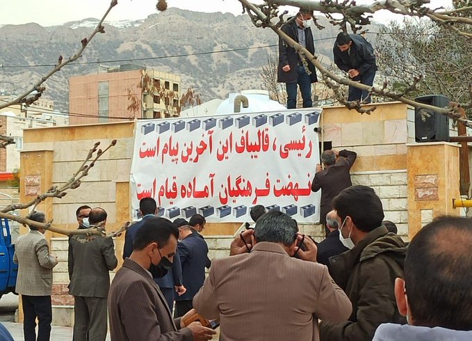 In Yasuj, in south-western Iran, teachers even had a large banner with the following slogan: “Raisi, Ghalibaf, this is the last message/ The teachers’ movement is ready for insurrection.”
